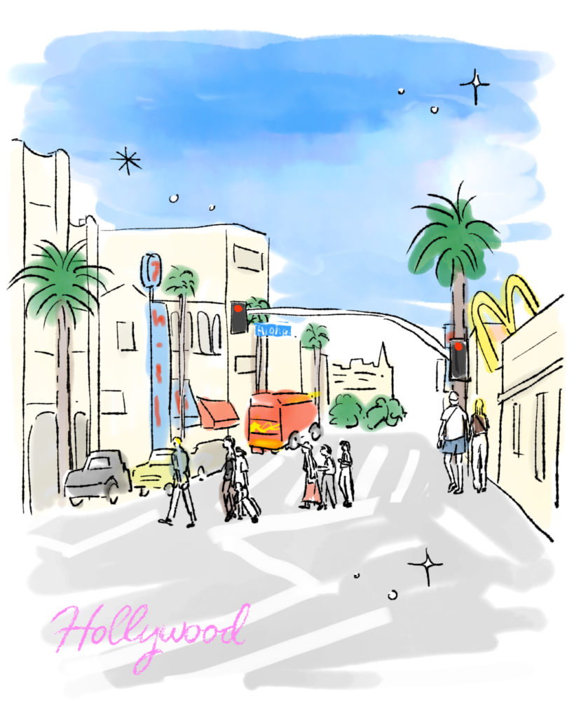 駐車場から地上に出ると、目の前に映画の街・ハリウッドの景色が広がります。