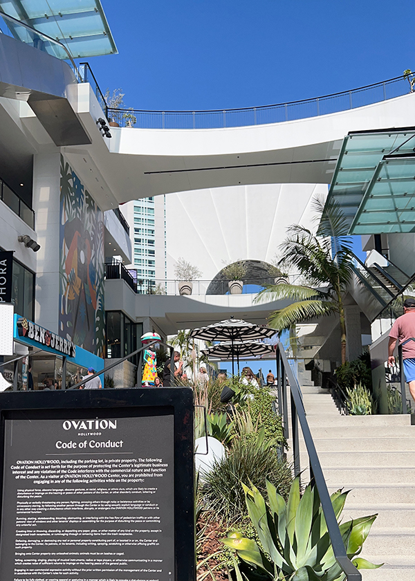 場所を説明すると、オベーション・ハリウッドの建物をつなぐ回廊ですね。