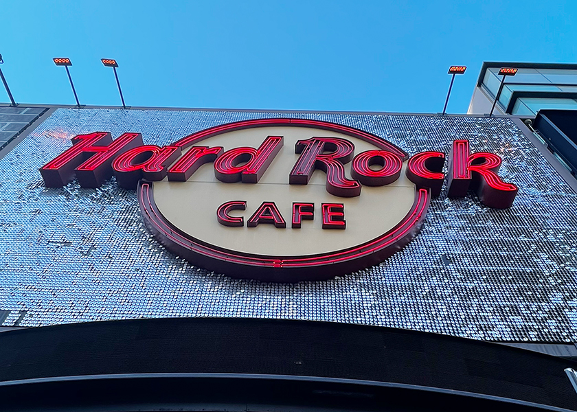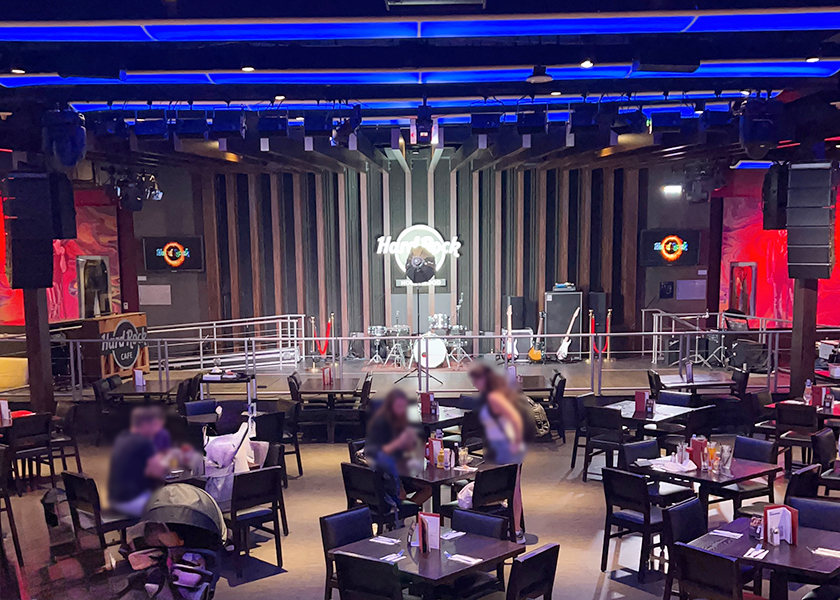 オベーションセンター近くにあるハードロックカフェの店内は、ライブステージがあったり、ギターが飾ってあったりとロック感満載!