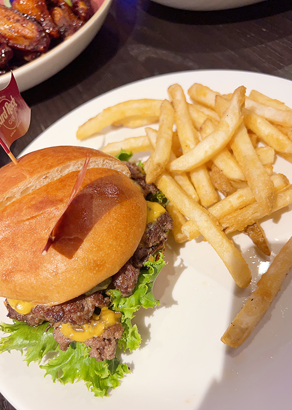 ハンバーガーとサラダ、チキンウイングなどをシェアしながら食べました。