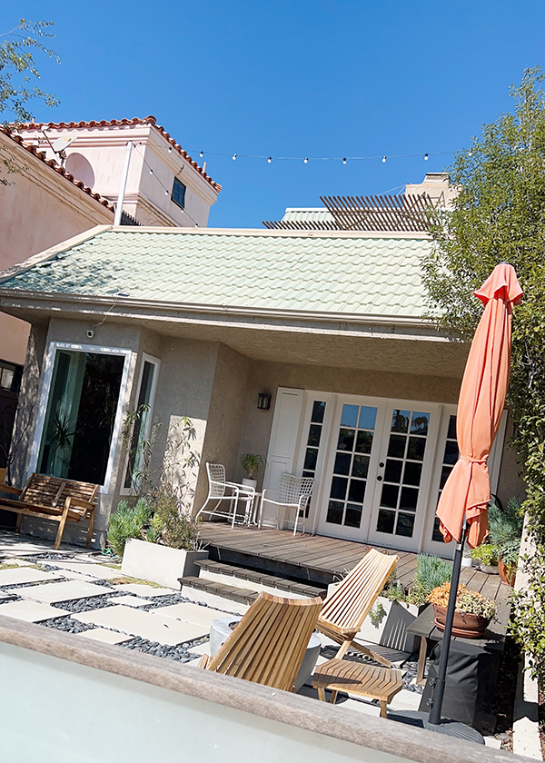 必ずと言っていいほどテラスがあり、テーブルセットが配置されています。